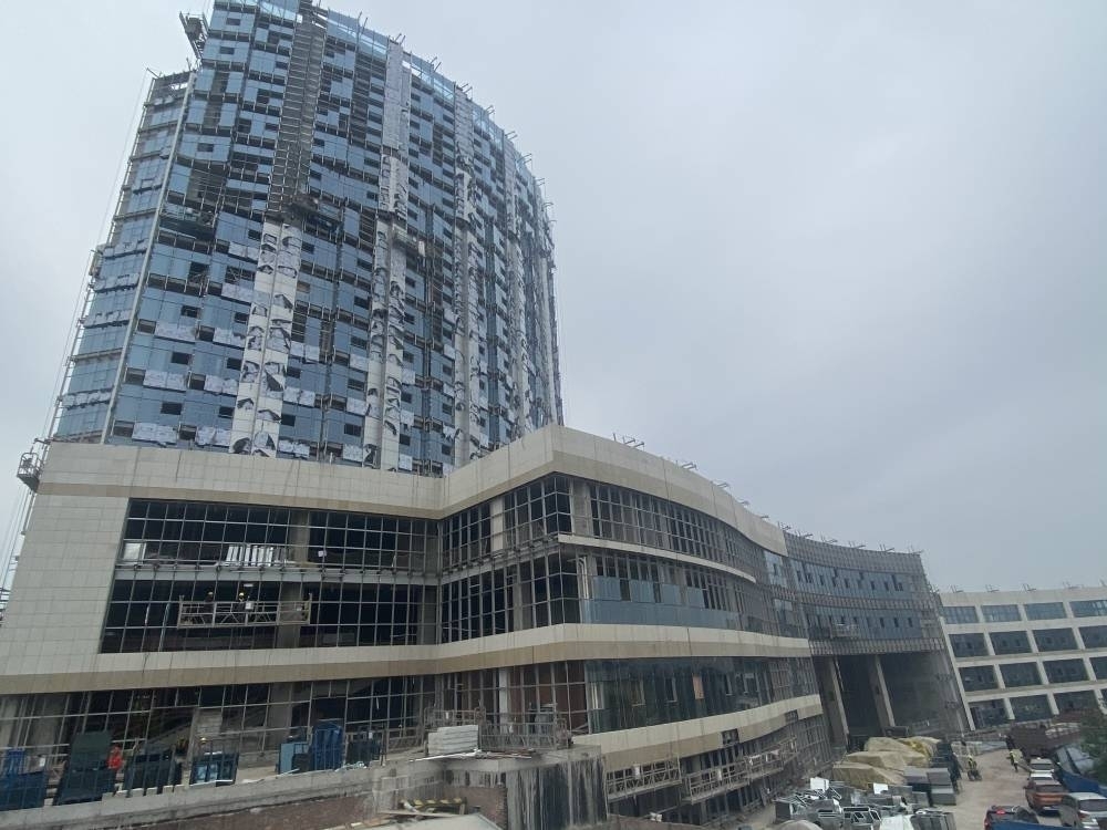 地下2層,地上16層,總高度67.5m,基礎(chǔ)為旋挖樁基礎(chǔ),主體為框架剪刀力墻結(jié)構(gòu),外墻為鋁板、石材及玻璃幕墻,建筑面積38135㎡。